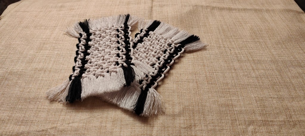 Ying & yang inspired coaster twins. These coasters are approximately 16 cm X 8 cm. They are priced at 185 INR per pair.